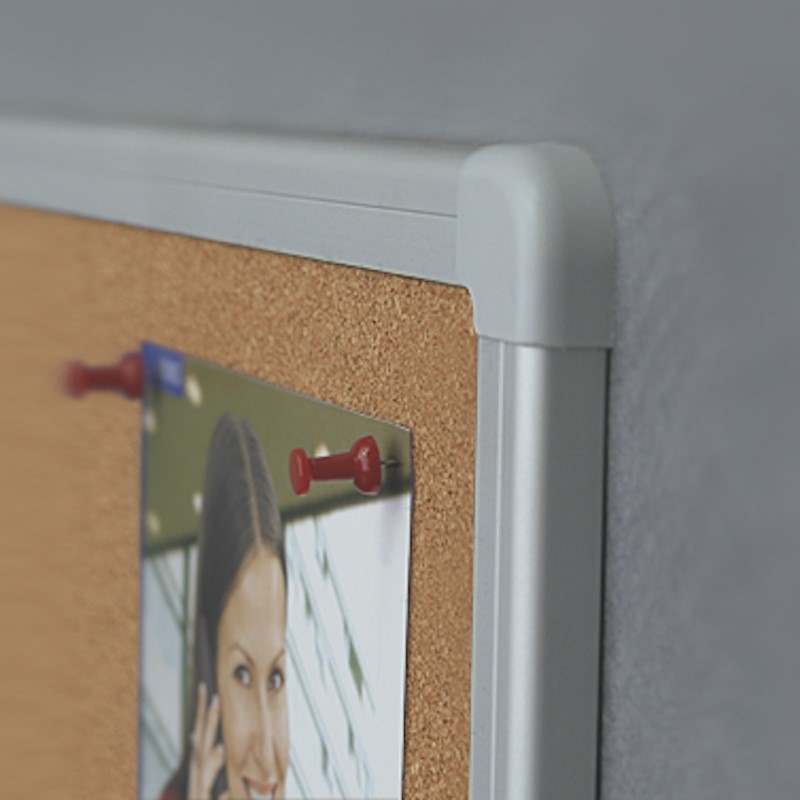 240 x 120 cm Nejoblíbenější typ korkové tabule, který nesmí chybět v žádné kanceláři! Díky korkovému povrchu můžete jednoduše připevňovat materiály na nástěnku pomocí špendlíků. Povrch tabule je vyroben z vysoce kvalitního korku, který zajišťuje dlouhou životnost i při velmi intenzivním používání tabule.